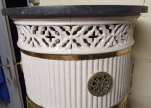 Poêle de la faïencerie de Sarreguemines, époque fin XIXème. Peint et doré à la main.
